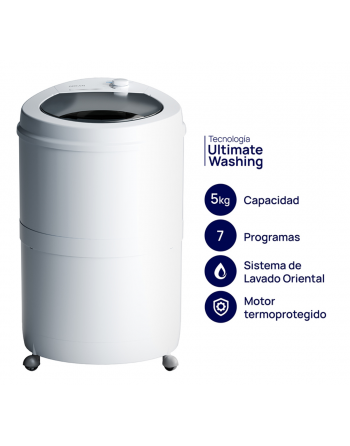 Carga Superior - Capacidad 5 kg - Sistema de Lavado Oriental - 7 Programas - Motor Termoprotegido - Equipo Vaivén