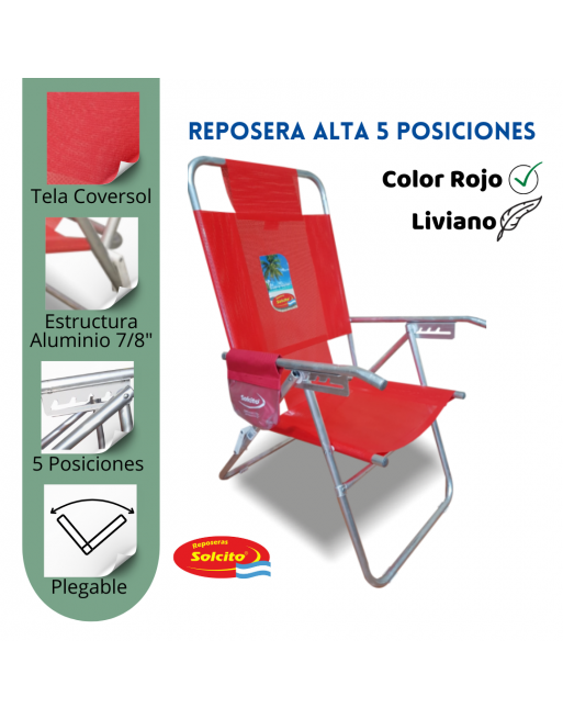 Reposera Solcito 3027, 5 posiciones Aluminio, Rojo
