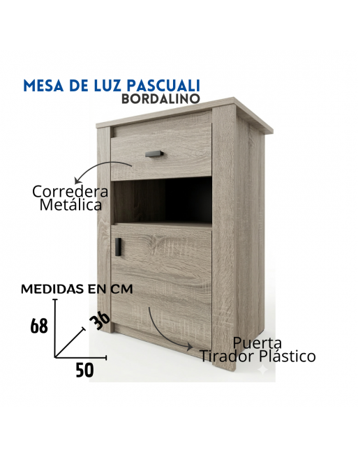Mesa de Luz con Cajón y Puerta Bordalino