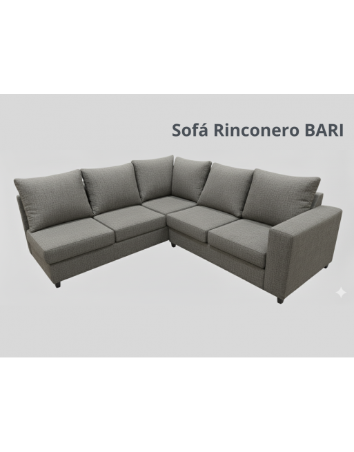Sillon Rinconero Bari. Se parado en 2 partes. Medidas: 250cm x 230cm. Tapizado en tela Jagger Color Stone (tono gris). Almohadones de asientos y respaldos desenfundables.