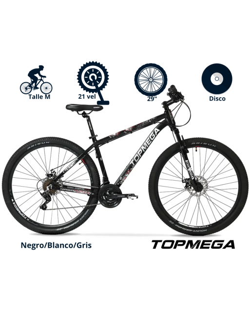 Bici TopMega Regal. R29. 21V. Aluminio Negro Blanco Gris Talle M