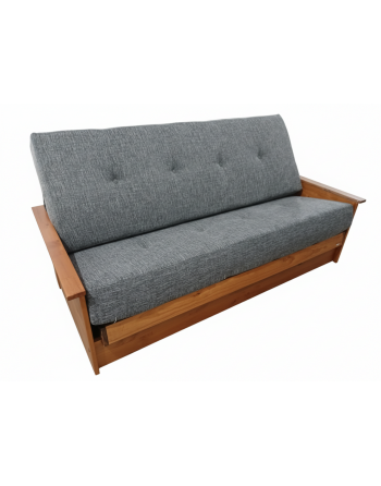 Futon 3 Posiciones (Sillon, Reposera y Cama). Hecho en madera de pino. Terminado en laca. Colchon relleno de espuma rigida y tapizado en tela. Ancho Total 205cm