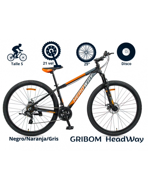 Gribom HeadWay Rod.29" MTB 21vel aluminio Talle S - Negro-Naranja-Gris (25HDW2915006)