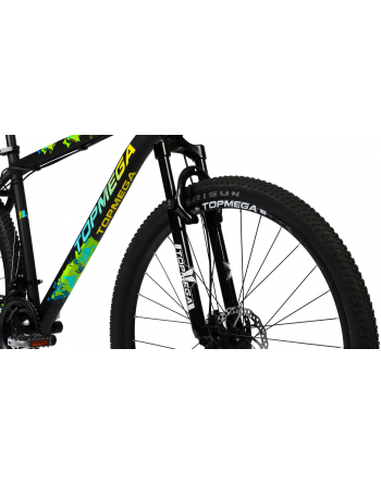 Bici TopMega Regal. R29. 21V. Aluminio Negro Verde Celeste Amarillo Talle M (LP25041941)