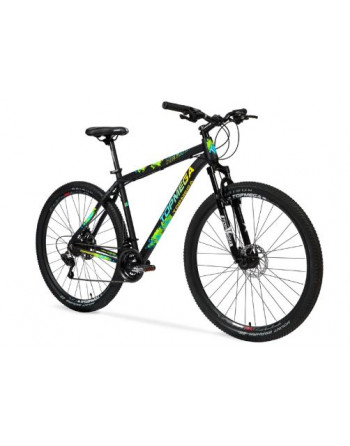 Bici TopMega Regal. R29. 21V. Aluminio Negro Verde Celeste Amarillo Talle M (LP25041712)