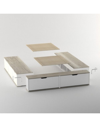 Base para Colchón de hasta 150x200cm - 6 cajones - 2 zapateros - Medidas 205cmx150cmx37cm