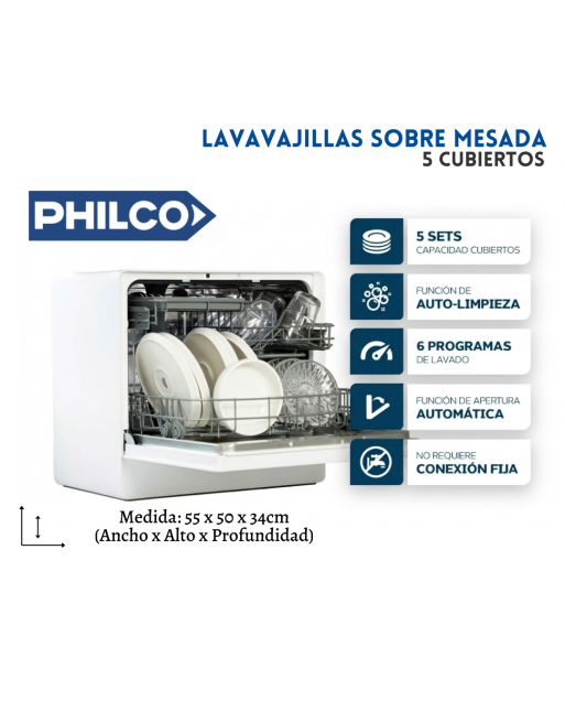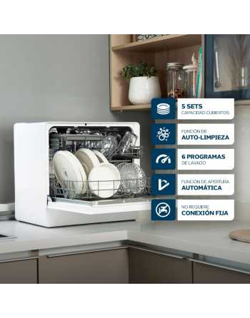 Lavavajillas 5 cubiertos - 2 CESTOS - 7 Programas de Lavado - Autolimpieza -