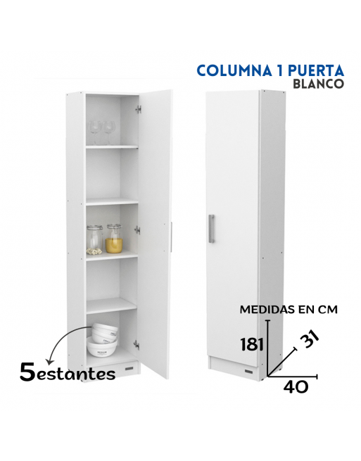 Es un producto con gran capacidad de almacenamiento pensado tanto para cocina como un lavadero. De 5 estantes, de los cuales 2 son regulables. 2 puertas - Medidas Alto 181cm - Ancho 57cm - Prof 31cm